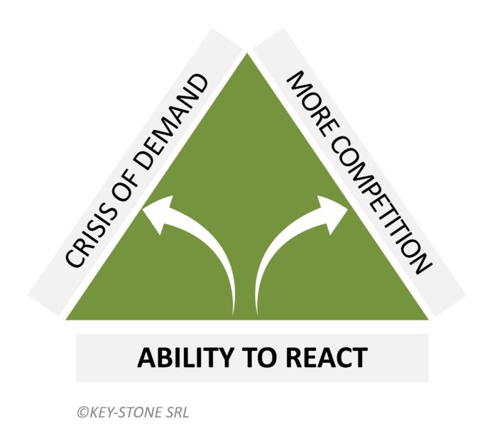 Настоящата ситуация обаче е различна. Икономическите и финансовите системи в Европа и САЩ бяха сравнително стабилни преди избухването на пандемията от SARS-CoV-2, демонстрирайки пълно икономическо възстановяване и положителни основни индикатори за развитие и растеж. С настъпване на пандемията възникна криза във взаимовръзките, тоест невъзможност за доставяне и продажба на продукти и услуги поради нуждата от физическо дистанциране. По време на периода на самоизолация и карантина всяка страна стопира около 60% от производствената си дейност, предизвиквайки огромен икономически шок, чийто мащаб е пропорционален на продължителността на периода. Произходът на кризата обаче е външен, екзогенен за системата, можем да го разглеждаме като огромен икономически спад, който е ударил света.