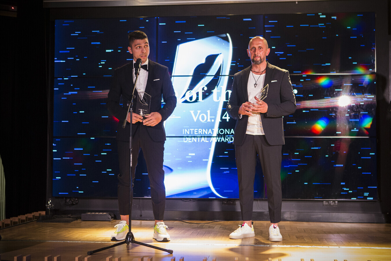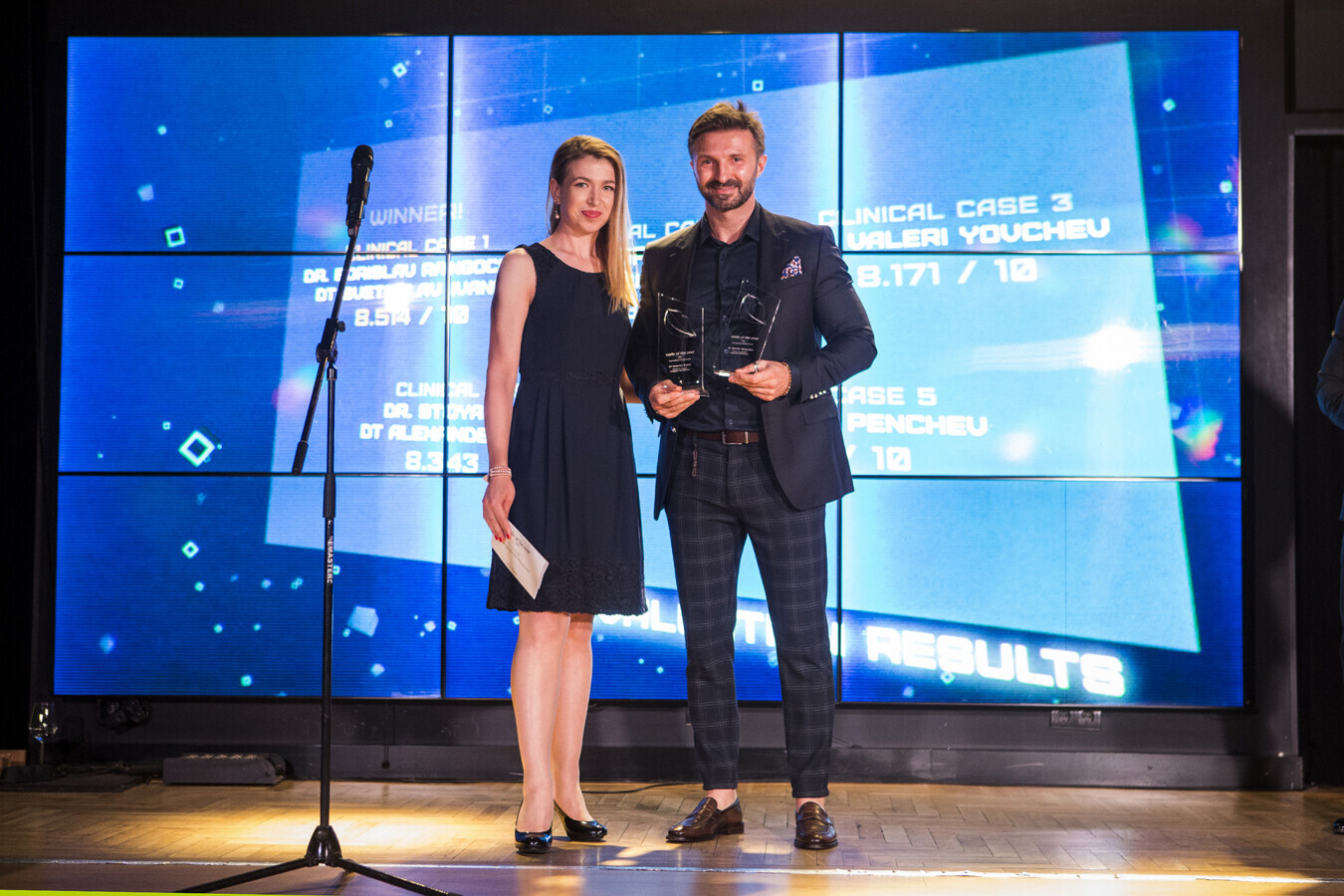 Наградата в най-сложната категория – „Комплексно естетично възстановяване“, журито отсъди на д-р Калин Маринов и зт. Стефан Петров. Приза връчи д-р Кирил Динов – лидер на мнение в областта на функционалната оклузия и естетика.