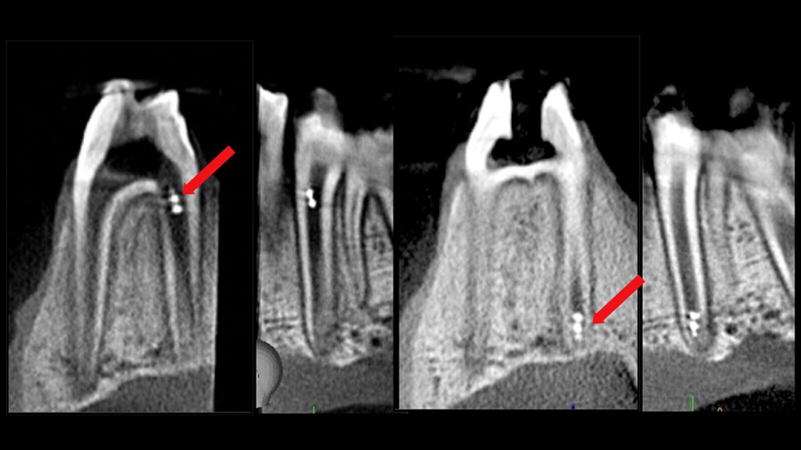 Магнитно задвижвани 3D-принтирани роботи биват прецизно контролирани, така че невъзпрепятствано от заобикалящия периодонциум да достигнат до апикалната една трета на кореновия канал, както е визуализирано и проследено на CBCT. (Снимка: Университетът на Пенсилвания)