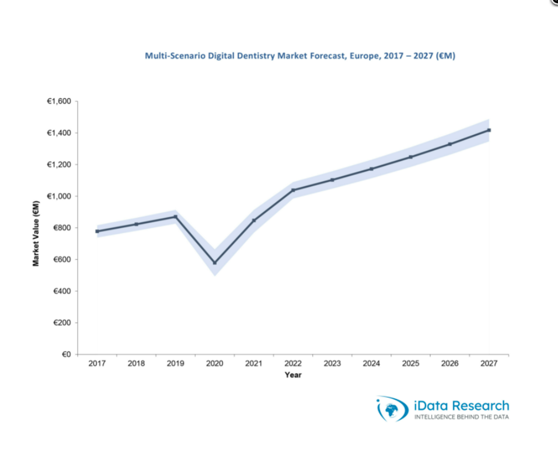 Пазарът за дигитална дентална апаратура в Европа, който включва CAD/CAM системи, CAD/CAM материали и дентални 3D принтери, се очаква да претърпи двуцифрен растеж до 2027 г., достигайки над €1.4 млрд. ($1.7 млрд.), понеже дигиталните технологии предизвикват революция в начина на практикуване на денталната медицина в Европа и тази тенденция ще се запази и в бъдеще. Това е предизвикано от бума в продажбите на интраорални скенери и дентални 3D принтери.