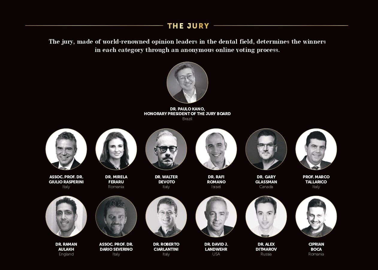 Световноизвестните дентални специалисти д-р Paulo Kano от Бразилия, доц. д-р Dariо Severino (Италия) и проф. Marco Tallarico (Италия), се присъединяват към журито на предстоящото издание на международния конкурс, който ще излъчи своето осемнадесето поредно издание. Големият Paulo Kano е поканен за почетен президент на журито.
